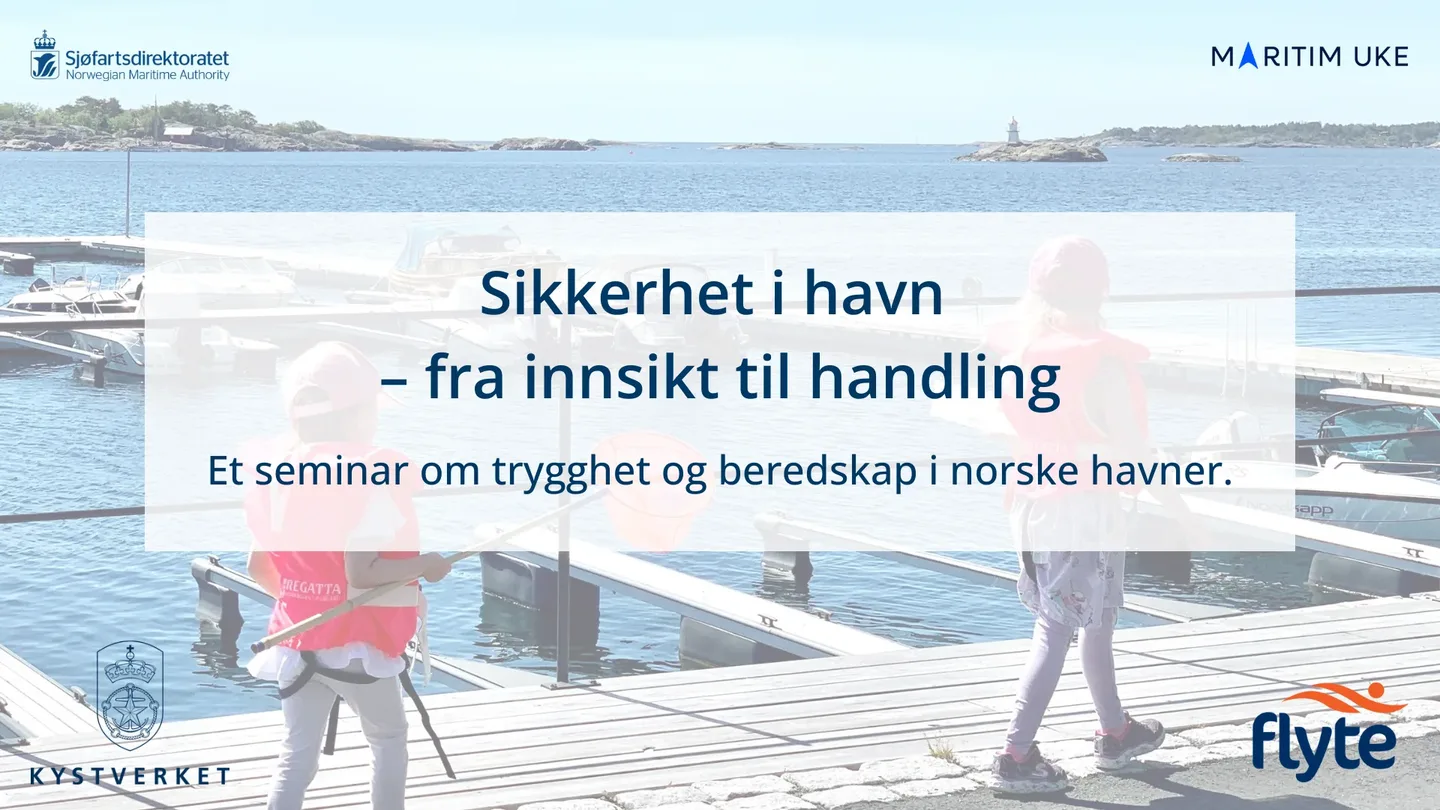 Onsdag 3. september inviterer Kystverket, Sjøfartsdirektoratet og Flyte til seminaret Sikkerhet i havn – fra innsikt til handling, under Maritim Uke i Haugesund.